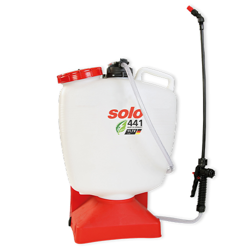 Az új SOLO 441 az akkumulátorral működtetett permetezők belépő gépe. Robosztus, könnyű lítium-ion akkumulátorral rendelkezik, amely akár 170 perc folyamatos működést is biztosít, és mindössze két órán belül újratölthető. A nagy teljesítményű és tartós elektromos szivattyú 2,5 bar üzemi nyomást biztosít. A kompakt, cserélhető akkumulátor könnyen hozzáférhető, könnyen eltávolítható, rugós fedél végi a szennyeződésektől. A gép formájának kialakítása a gerinc anatómiájának figyelembevételével történt, így a kényelmes vállpántokkal együtt egy igazán ergonomikus gépet vásárolhat. A csomag az akkumulátort (49486) és a töltőt (49458) tartalmazza.